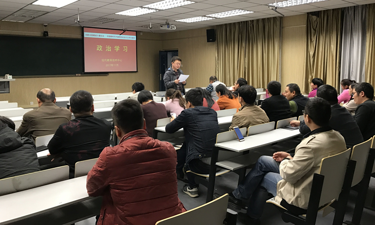 根据学校政治学习安排,11月2日下午,现教中心组织全员深入学习习近平总书记在党的十九大开幕会上所作的报告—《决胜全面建成小康社会 夺取新时代中国特色社会主义伟大胜利》,教工直属第五党支部书记张龙同志领学了十九大报告。