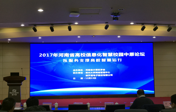 2017年河南省高校信息化智慧校园中原论坛由河南省计算机学会主办,郑州大学网络管理中心、新开普电子股份有限公司协办,主题为以服务支撑高校运行;论坛邀请多名省内外专家、高校及企业代表到场报告、宣讲,省内多所高校近百名同行到场听取报告、互动、交流经验。