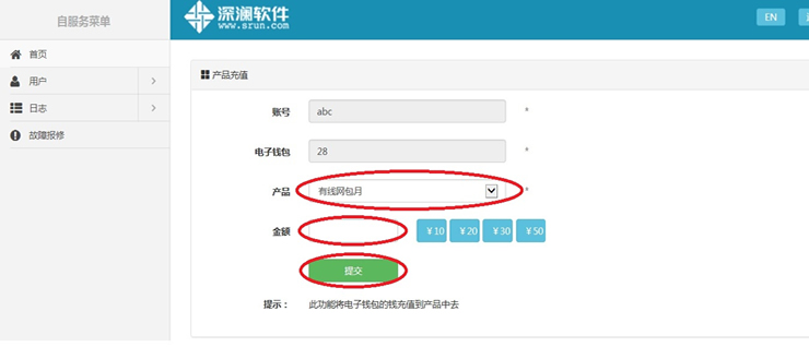 提醒:选择“按时长”最小充值金额为1元,选择“有线网包月”最小充值金额为25元,选择“有线无线一体化包时” 最小充值金额为30元。