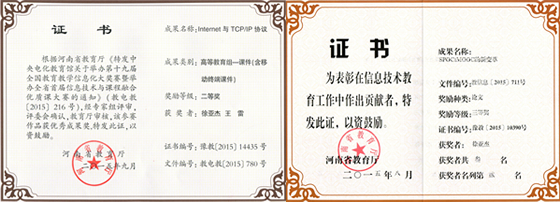 2015年度,经过大家的共同努力,现教中心在“河南省信息技术教育优秀成果奖”中有三项论文荣获三等奖,在“第十九届全国教育教学信息化大奖赛暨举办全省首届信息技术与课程融合优质课大赛”中有两项课件荣获二等奖,取得了可喜成绩。这些研究项目均要求以现教中心相关业务或技术范围为背景,以有效的提高工作效率或工作技能为目标来开展的。因此,达到了通过以开展科研工作来提升工作水平的目的。
