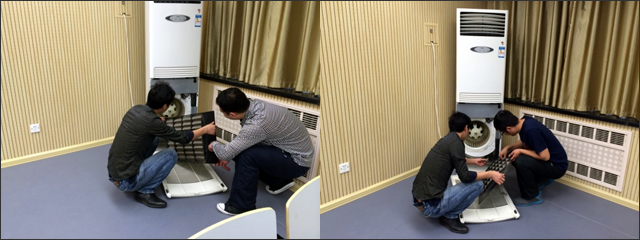 为了不影响教学活动的正常进行,现代教育技术中心相关人员利用教室课余时间,认真检查空调、清理滤网病进行试机。不能解决的及时上报学院总务处事务科,由事务科安排专业人员上门维修。