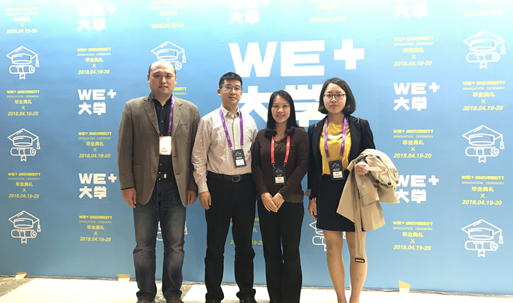 4月19-20日,由中国高等教育学会教育信息化分会指导,教育大数据应用技术国家工程实验室、中国职业技术教育学会信息化工作委员会、金智教育等联合主办的“WE+2018智绘互联校园新生态大会”在江苏苏州举办。近2000名来自全国700多所高校的老师和业内专家参加会议,我校由现代教育技术中心主任李保华带队,教务处程敏姿科长、学务处孙鹏科长及现教中心徐亚杰老师等参会学习交流。