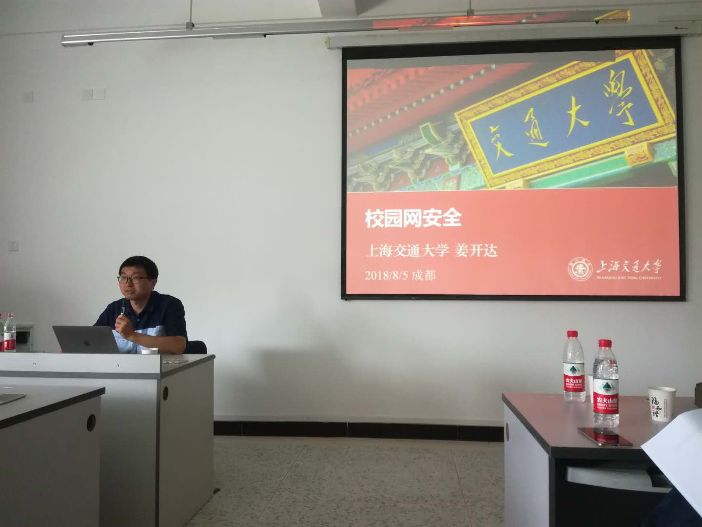 在为期8天的培训会上,中国教育网上海节点网络运行中心主任姜开达、成都信息工程大学信息安全研究中心主任万国根博士以及东北大学、厦门大学、东南大学、哈尔滨工业大学等高校的信息安全负责人和安全网络厂商的技术人员对当前的网络安全,尤其是校园网络安全的进行了深入的剖析以及校园网络安全如何适应当前的国家网络信息安全的大环境进行了详细的讲解,并从管理和技术角度对网络信息安全进行了系统化的培训。