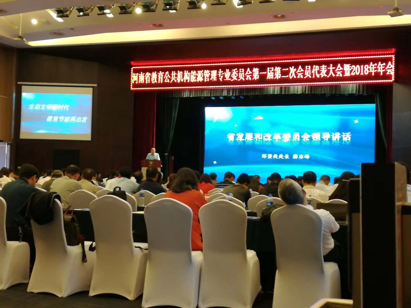 省教育厅、省生态环境厅、省机关事务管理局领导;省高校后勤协会领导;省能专会主任、副主任、秘书长、副秘书长等出席会议,会议以“生态文明新时代教育节能再出发”为主题,传达了中国教育后勤协会第二次会员代表大会及中国教育后勤协会能源管理专业委员会2018年年会精神”,并对“2018年节能设计及创意大赛活动”获奖人员代表及优秀组织单位代表和“节能项目实施案例”获奖单位进行颁奖。
