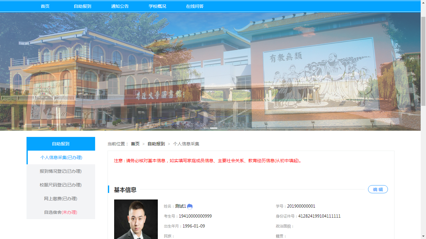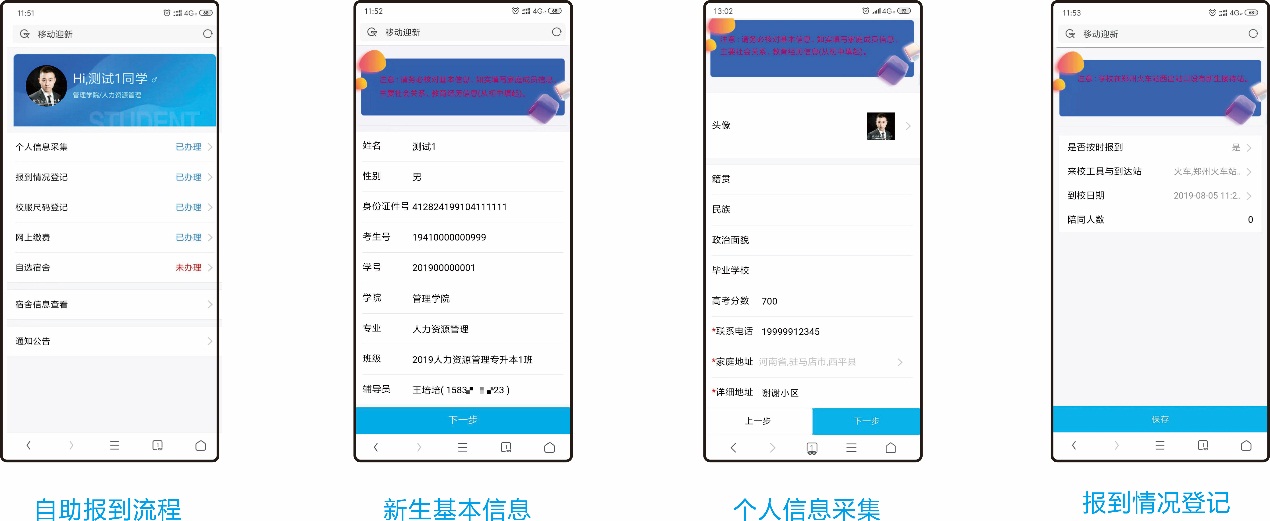 网上自助报到分为五个环节进行: