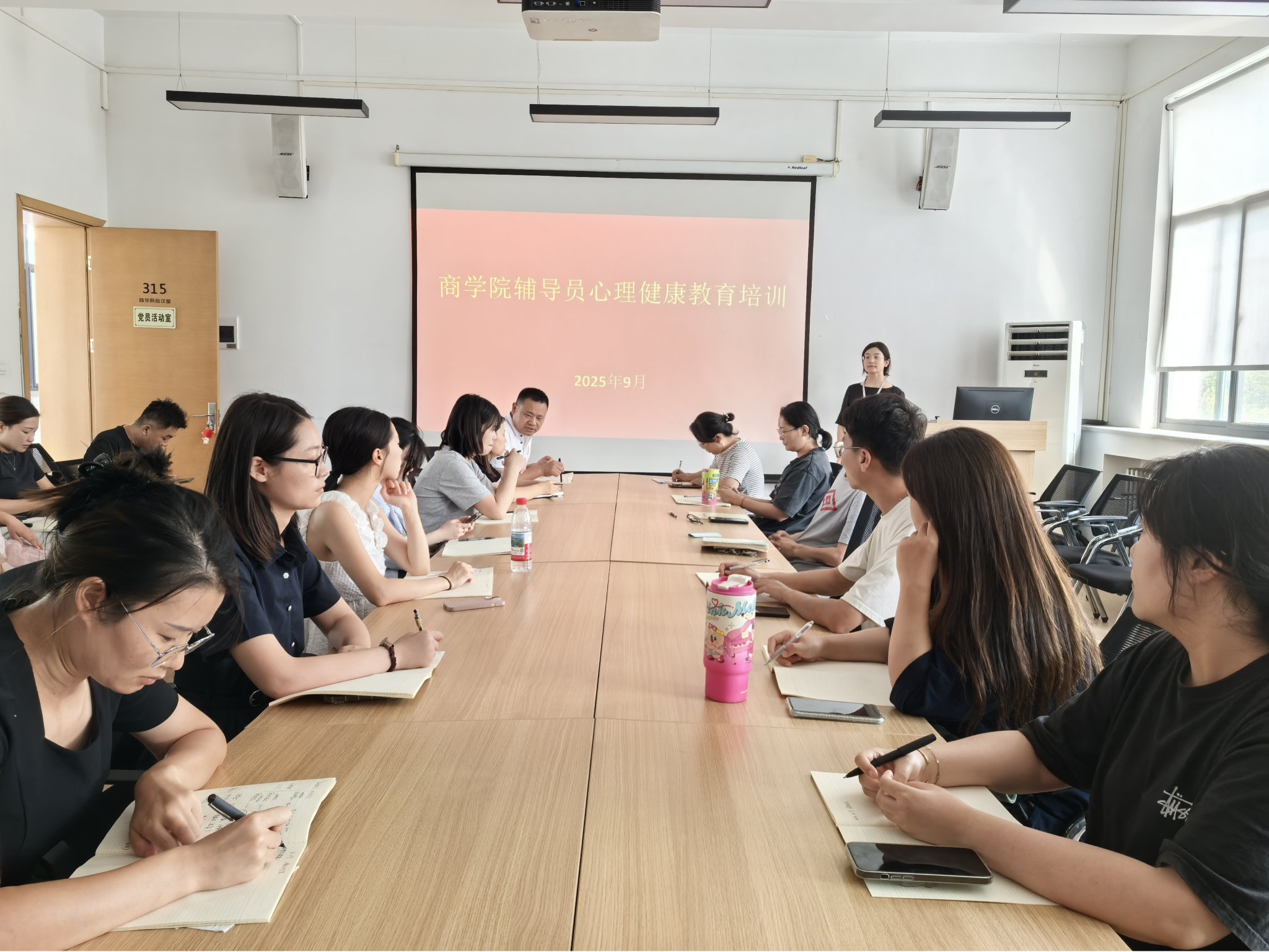 为进一步加强学院学生工作队伍建设,提升辅导员的心理健康教育能力和业务水平,更好地守护学生心理健康,2025年9月1日,商学院在教学2号楼315会议室成功举办了辅导员心理健康教育专题培训会。本次培训特邀拥有专业心理咨询师资格、具备丰富教学经验的李培老师担任主讲。院党委书记郭峰、副书记郗艳花及全体辅导员参加了此次培训。