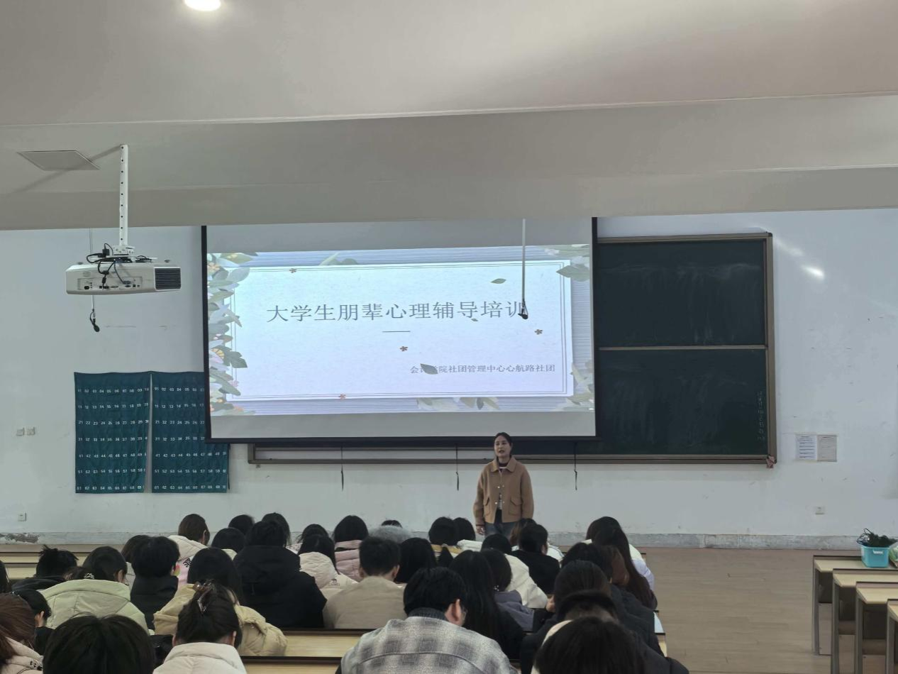 为进一步提升班级心理委员的朋辈心理支持能力,筑牢校园心理健康防护网,11月13日,会计学院在教学4号楼118教室组织开展“大学生朋辈心理辅导培训”活动。学院全体班级心理委员参与培训,会计学院心理辅导站站长蔡艳丽老师担任主讲人,为在场同学带来了一场兼具理论深度与实践价值的专业指导。