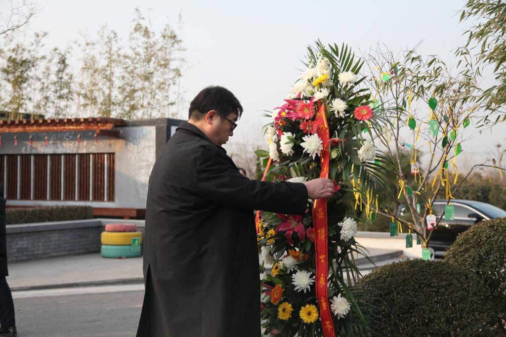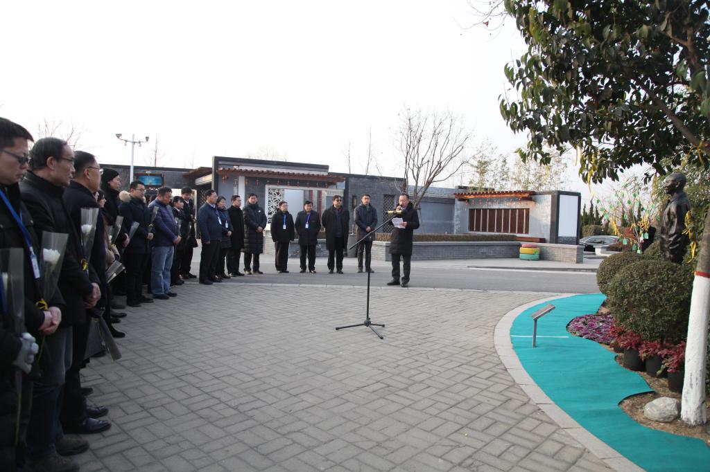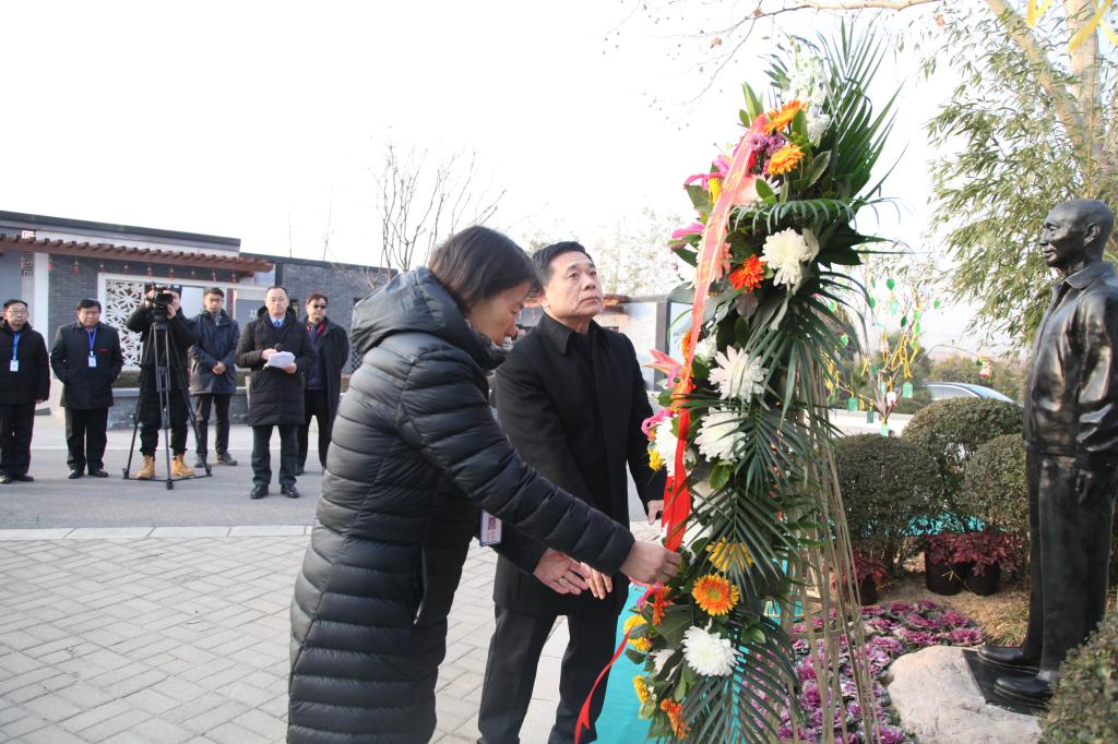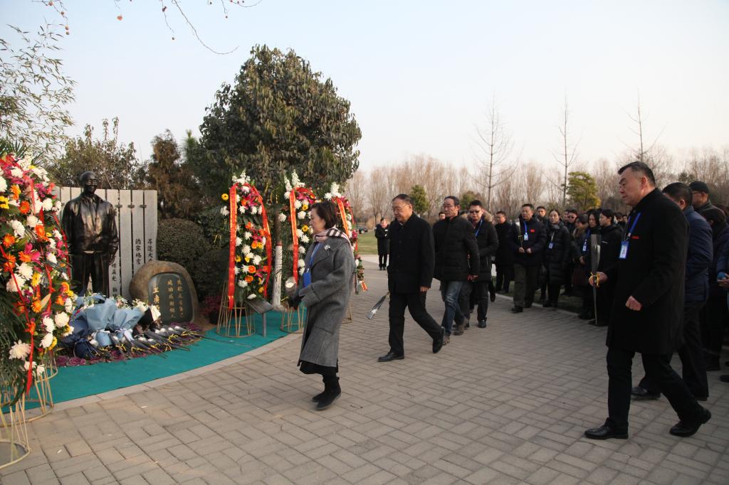 是日上午,参加仪式的人员,冒着严寒,怀着无比崇敬的心情来到创办人纪念像前,瞻仰创办人并敬献鲜花,缅怀创办人的不朽功绩和高风亮节,表达对创办人的无限哀思和深切怀念。
