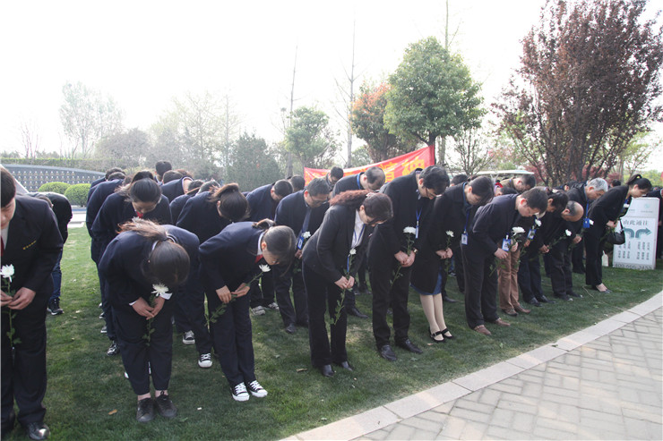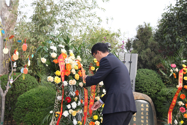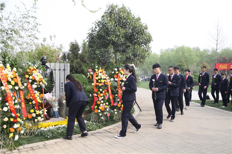 清明时节悼英魂,深切怀念创办人。4月4日上午,在清明节到来前夕,我校在龙湖镇的河南省福寿园、创办人王广亚博士纪念像前,举行缅怀创办人王广亚博士献花仪式。出席仪式的校领导有:执行董事王新奇、校党委书记张德伟、常务副校长崔慕岳、校党委副书记兼纪委书记戎庭银、副校长兼工会主席张金安等。福寿园实业有限公司副总经理陈振楠先生和学校各行政单位主管、副主管,二级学院院长、总支书记、副院长,教学部主任、副主任,教师代表及学生代表,参加了敬献鲜花仪式。敬献鲜花仪式由校办主任朱永恒主持。