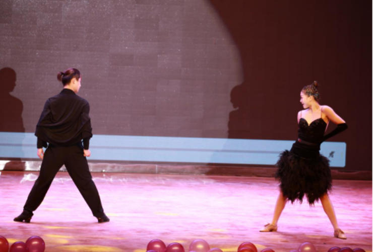 首先是,拉丁集体舞由女团带来的《热爱》。即使在毕业前夕,面临各种压力,同学们仍不忘初心,保持着对舞蹈的热爱。因为热爱,我们一齐选择了舞蹈;因为热爱,我们相聚在升达。对于一切来说,只有热爱才是最好的老师。