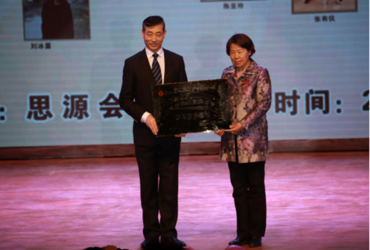 校长郭爱先教授向尤谊主席颁发了我校校企合作牌匾。