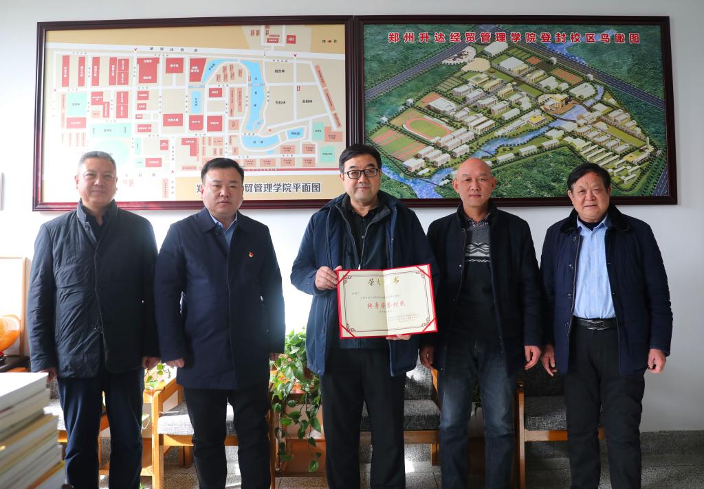 元月11日上午,巩义市大峪沟镇于晓理镇长一行数人,冒着刺骨的寒风来到我校,为董事长王淑芳颁授了一面“情系桑梓”的巨幅匾牌。