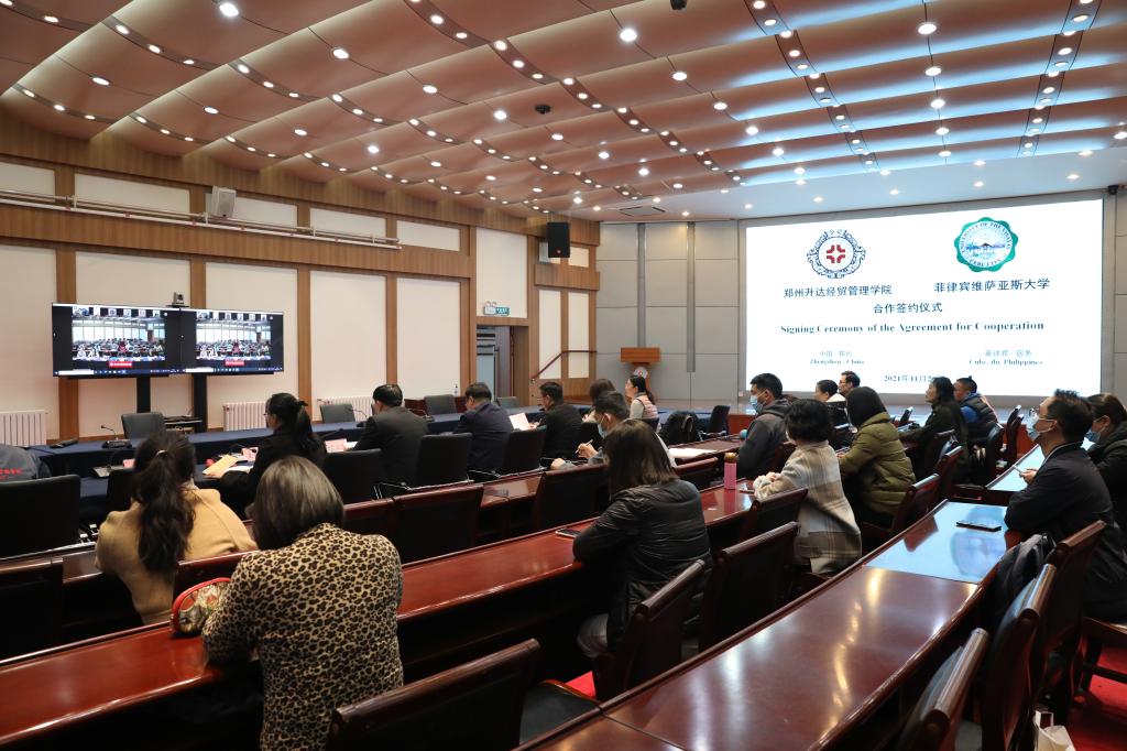 11月26日,我校与菲律宾维萨亚斯大学在国际会议厅举行合作协议签约仪式。执行董事王新奇、副校长兼教务长吴益民出席会议,菲律宾维萨亚斯大学首席执行官伊尼戈、首席财务和行政官罗斯玛丽、首席学术官安娜·卢、研究执行总监维多利亚、研究主任莉莎·洛伦娜参加视频会议。发展规划处、科研处、人事处、国际交流处相关部门及维萨亚斯大学博士项目报名教师参加会议。