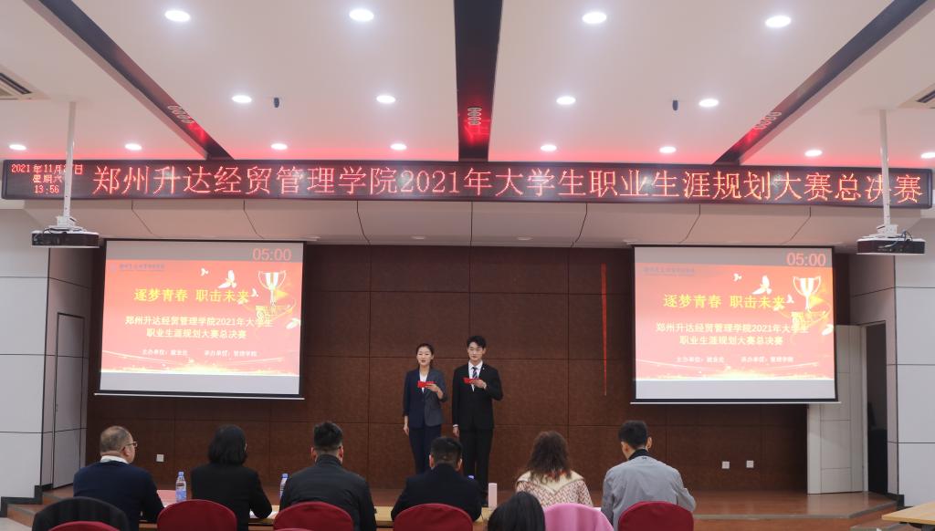 11月27日,我校2021年大学生职业生涯规划大赛决赛在就业处报告厅成功举办。就业处处长冯科、创新创业教育学院院长王铮、外语学院院长张梦、管理学院党委书记张小雁、校团委副书记李松涛、创新创业教育学院任广华出席比赛并担任评委;进入决赛的10名选手和学校各年级30名学生代表现场观赛,近2000名学生通过网络直播观看了比赛。