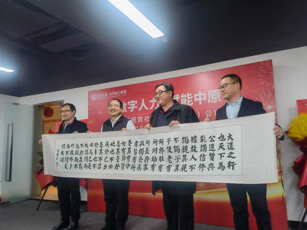 社宝科技创始人兼CEO李贤威首先向大家介绍了目前社宝科技在全国的事业布局情况,并强调了郑州分公司在社宝科技全国布局中的战略地位。他感谢母校一直以来对自己事业发展的关注支持,表示未来在郑州布局的HRwork项目中,会继续为学弟学妹们提供更多优质的工作岗位,与母校共同探讨人力资源服务行业的新发展格局。