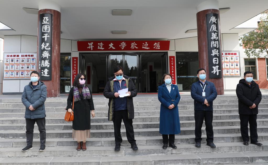 为贯彻落实上级关于疫情防控工作的部署和要求,检验和提高我校疫情防控应急处置能力,2月21日下午,我校疫情防控指挥部举行全校2022年春季返校开学疫情防控应急演练。在校校领导王新奇、郭爱先、张金安、张欣、吴益民、张其武现场观摩并指导,各疫情防控工作专班负责人及相关工作人员参加演练。
