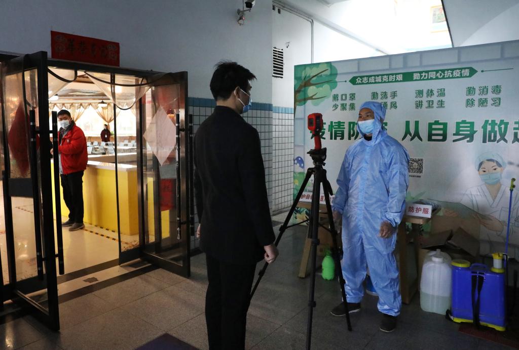 随后,应急演练严格按照春季学期开学和疫情防控工作要求,分别在学校西大门、学生宿舍13号楼、文萃苑餐厅、道镕教学楼等处,完整模拟了学生报到入校、入住宿舍、餐厅就餐、教室上课、应急情况处理等场景。参演教职工按照应急演练的路线和要求分工合作、协同配合,有条不紊开展应急演练,达到了预期效果。