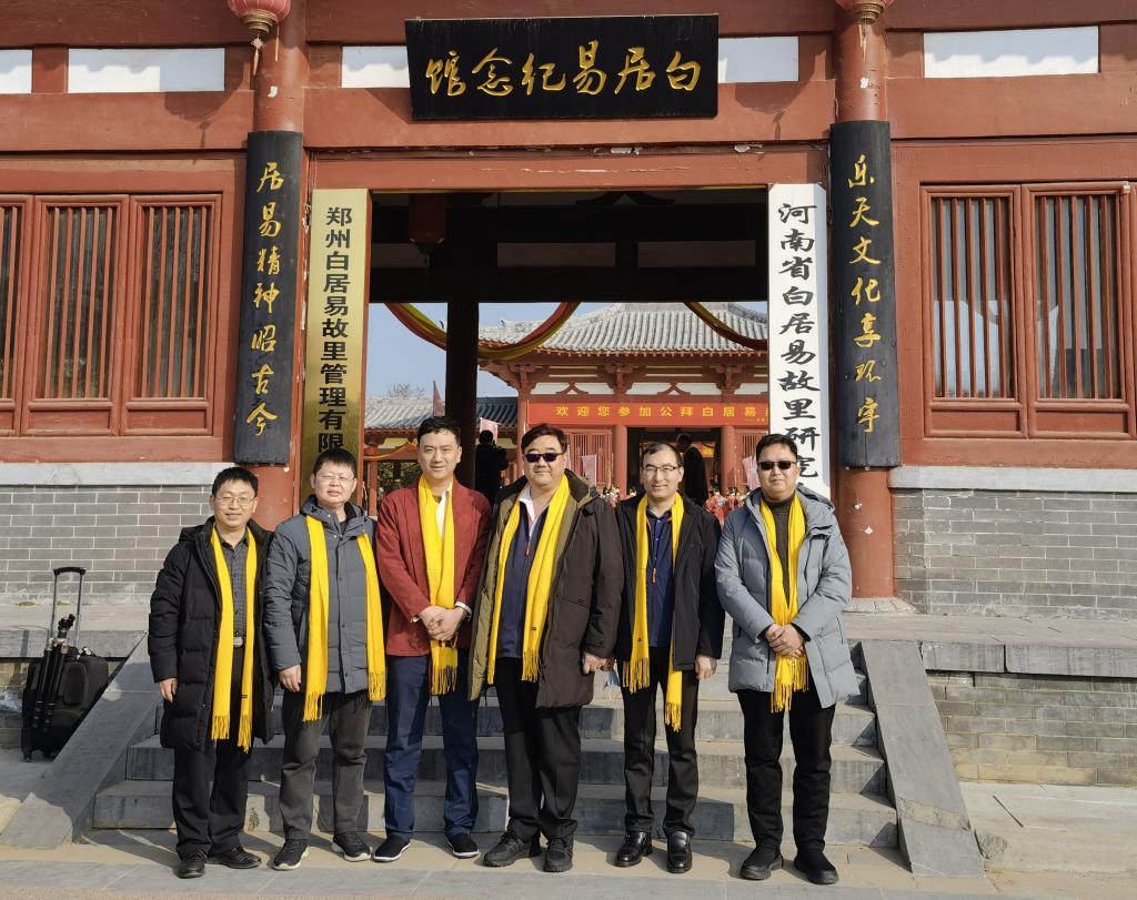 王新奇董事一行与白居易56代孙白亚楠(左三)合影