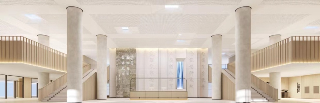 王新奇结合对国内外先进图书馆调研考察的经验、升达发展的历程、未来使用的需求,提出大厅的设计创意,让文献和环境相映生辉,把图书馆的厚重历史感和先进科技相融合。他对圆柱造型、Logo灯光、材料质量也都提出了明确要求。