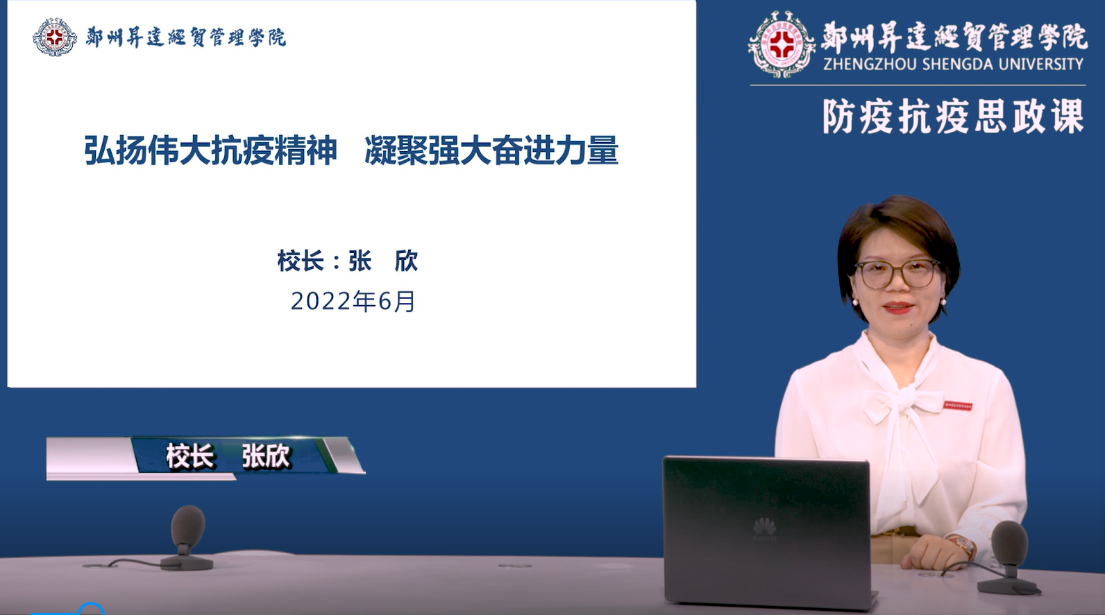 为学习贯彻习近平总书记关于新冠肺炎疫情防控工作的系列重要讲话精神,充分发挥思政课在立德树人、铸魂育人中的关键作用,2022年6月27日上午,校党委书记雷霆,校长、校党委副书记张欣通过线上教学形式,结合疫情防控的生动实践,深入浅出地为2万余名学生讲思政课。