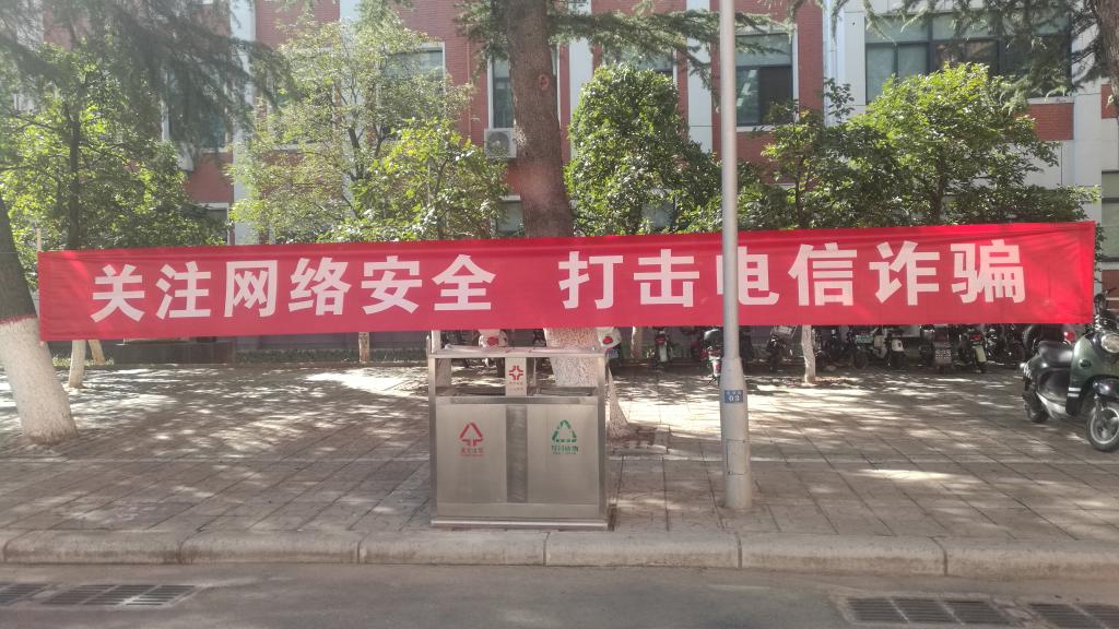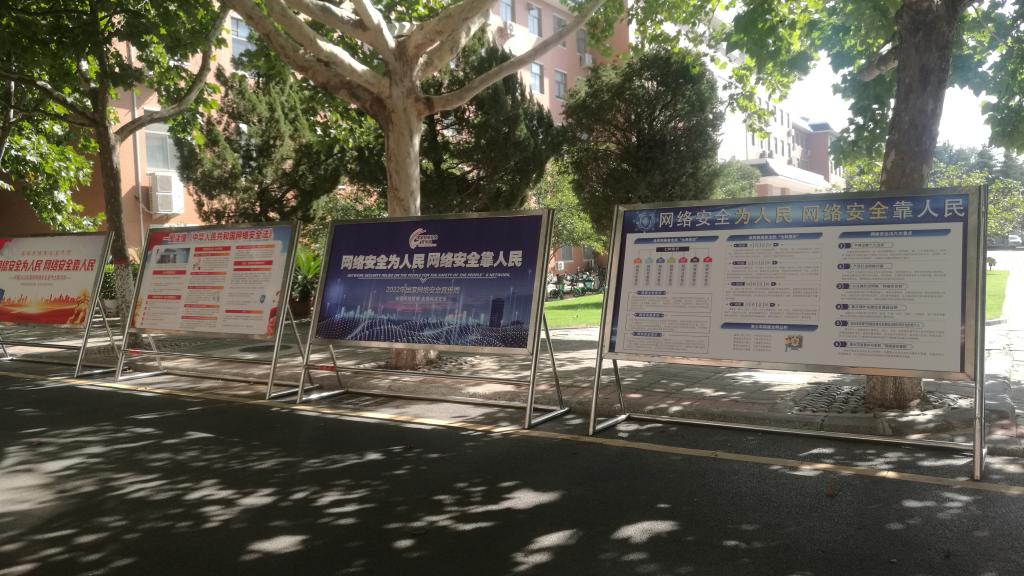发挥阵地作用,扩大宣传广度。学校在各主干道、教学区、住宿区、图书馆学习区等处摆放宣传展板、悬挂条幅、张贴海报,在各教学楼电子显示屏循环播放防诈骗、网络安全和个人安全意识等方面的网络宣传标语,通过校园广播宣传、播放有关网络安全的常识,学校官方微信公众号、微博专题推送网络安全知识文章。另外,学校还向36000余名师生发送了“2022年国家网络安全宣传周”主题手机短信,用贴近实际生活的话语让大家耳濡目染,更加重视网络安全。