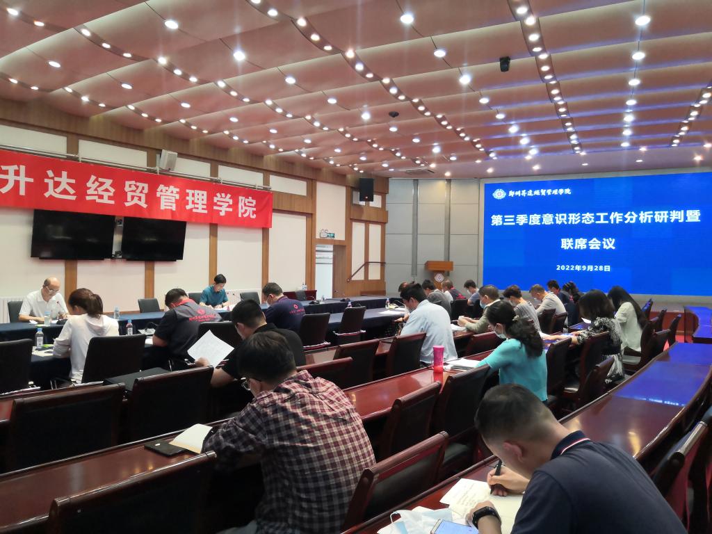 9月28日上午,我校在国际会议厅召开第三季度意识形态工作分析研判暨联席会议。校党委书记雷霆、各相关部门负责人及宣传部全体工作人员参加会议。会议由雷霆主持。