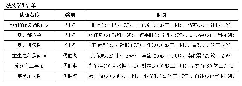10月2日,由郑州轻工业大学承办的2022年第四届CCPC中国大学生程序设计竞赛河南省赛圆满落幕。来自省内外的54所院校的375支队伍参加本次比赛。信工学院经过选拔,派出7支队伍参加了本次大赛,经过激烈角逐,我校参赛队伍获得了铜奖3项,优胜奖3项的好成绩。