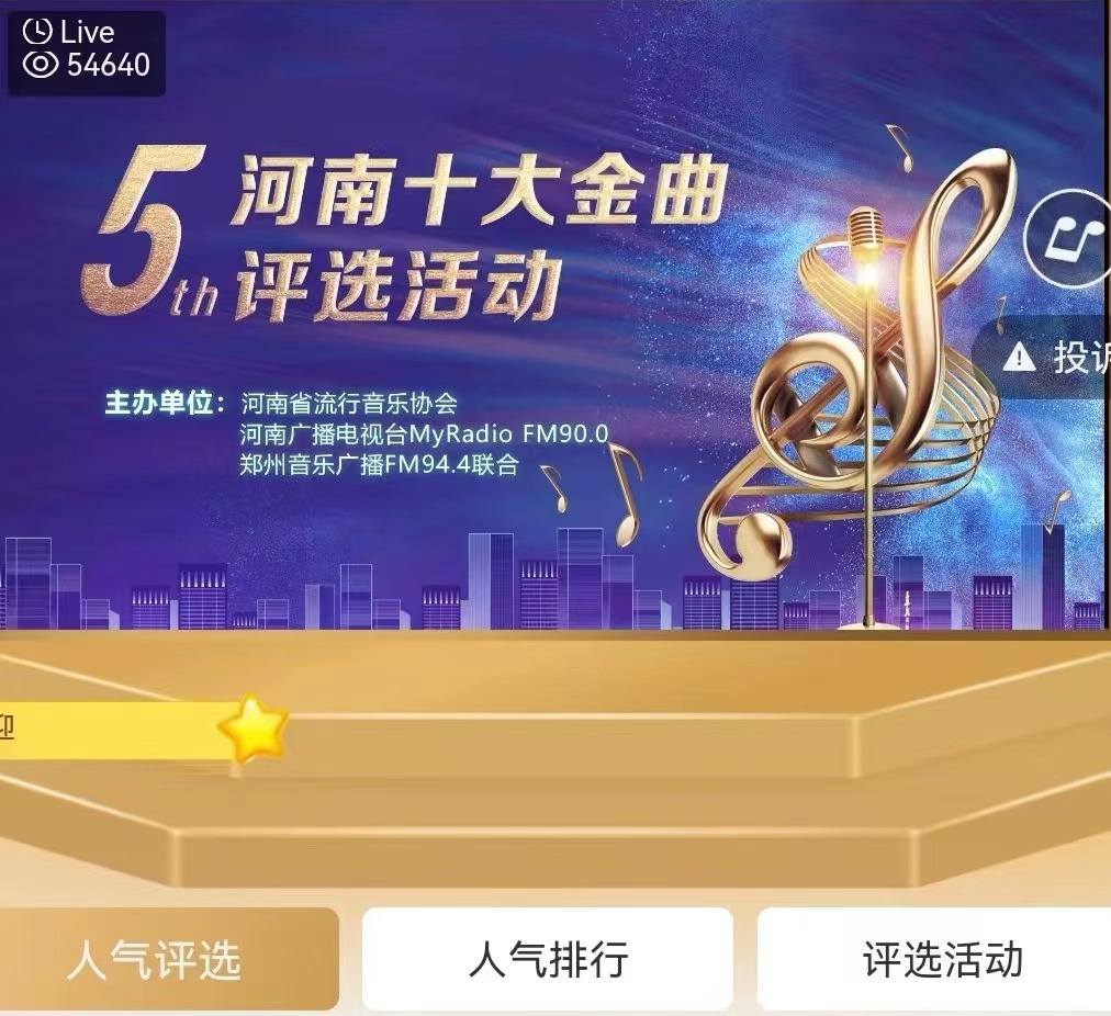 由河南省流行音乐协会,联合河南广播电视台My Radio FM90.0、郑州音乐广播FM94.4共同主办的第五届河南流行音乐十大金曲评选活动,经过一个多月的征集、海选,各大奖项于10月27日正式揭晓。