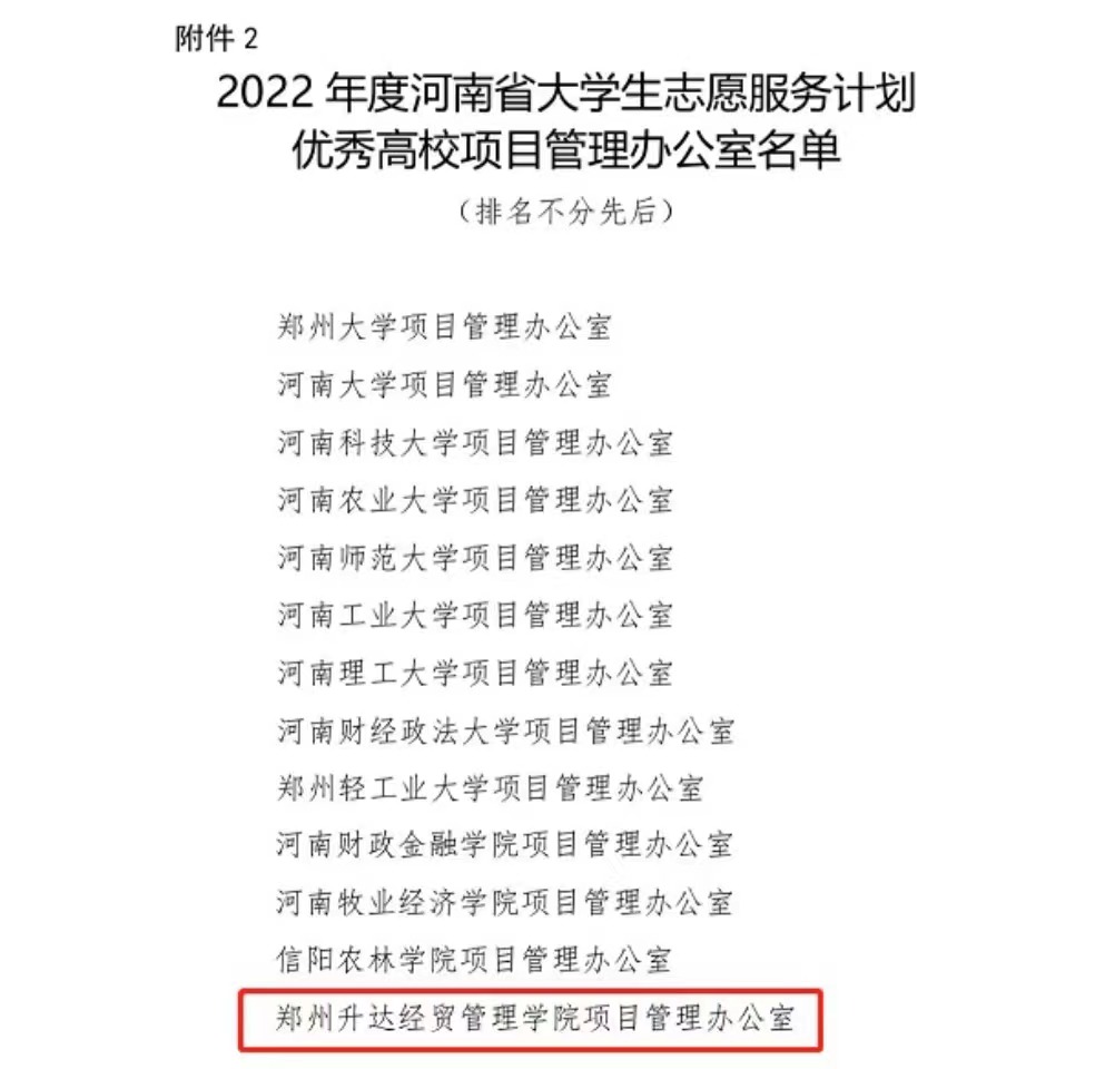 近日,河南省大学生志愿服务西部计划项目管理办公室、河南省大学生志愿服务乡村振兴计划项目管理办公室联合下发了《关于2022年度河南省大学生志愿服务计划优秀项目管理办公室和服务期满优秀志愿者的通报》,我校荣获“2022年度河南省大学生志愿服务计划优秀高校项目管理办公室”荣誉称号,是本年度唯一一所获此荣誉的民办高校。