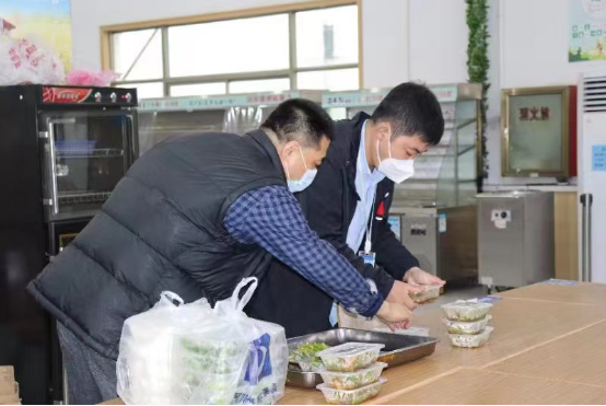 特殊时期,伙食科的在校职员,既当“指挥员”,又当“战斗员”。一天的供餐工作从凌晨开始,周而复始,直至午夜。刘文拴及樊世峰两位老师一日三餐均驻守在餐厅,在每天数次日常巡查中,对每一次供餐过程中的全面消杀、分拣、清洗加工、配餐、送餐、再消杀等环节严格把关,切实保障供餐全过程安全。他们还主动承担起了在转运点值守及在校内全员核酸时的志愿服务工作,为校园净土撑起疫情防控的“安全伞”,每一个需要帮助的现场,总能看到他们忙碌的身影。