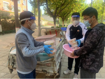 进入静态管理模式以来,整个学校的秩序呈现出较平常不一样的壮态,近三万五千多名学生都静态在宿舍里,这是一个艰巨而又复杂的任务。疫情就是命令,防控就是责任,身为一名共产党员的何会老师,响应学校号召踊跃报名参加志愿者服务团队,投入到校园抗疫的一线,为疫情防控工作,贡献自己的一份力量。何会作为志愿者团队负责人对口支援金贸学院。负责2、17、23、24号楼的送餐任务。根据这种情况,何会与志愿者们商量制定详细方案措施,有的放矢做好送餐购物等服务工作。