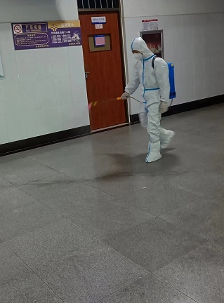 38号楼宿管员崔瑞霞同志,爱人为我校保卫科工作人员,两人在抗疫一线并肩作战。在38号楼楼长封控在家的情况下,一个人了承担起了楼内的卫生和消杀任务。因连续高强度的工作崔瑞霞同志身体产生了不适,即便如此,对待楼内工作的热情丝毫没有减退,对楼内学生依然关怀备至。当学生热情和崔艳霞打招呼说:“阿姨您辛苦了!”时,她也温柔的回复:“配合抗疫,你们也辛苦!”