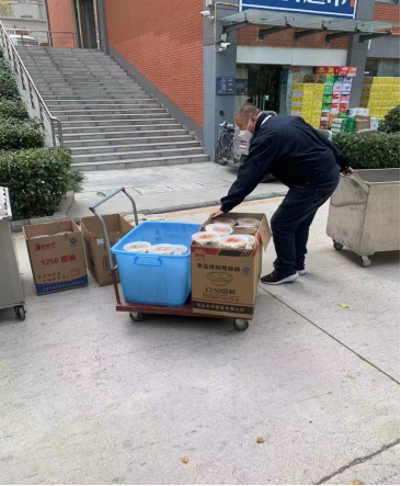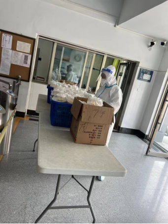 自从学校静态管理以来,出餐,送餐成了防疫期间的一大挑战。对此,教学楼管理员在学务处及劳卫科的指导下,刘建生同志58岁的年纪却主动要求加入防疫工作,作为志愿者帮助学生宿舍楼发餐并打扫学生宿舍楼外围卫生。后因32号楼成为重点宿舍,保持静态状态,后勤保障人员出现较大缺口,在人员不够的情况下,教学楼管理员谨遵学务处统一安排,刘建生同志带队,宁春亮、张明月、王铁军、杨锋松、乔志强、赵中强、曹利敏共八名教学楼管理员,为32号楼送餐送药。每天把所需药品从一楼到六楼分发到每个寝室门口,确保学生能够按时完成核酸检测工作。分发完成后,又马不停蹄的把各寝室的生活垃圾清运到垃圾场,保障校舍内部的卫生,杜绝病毒传播的机会。