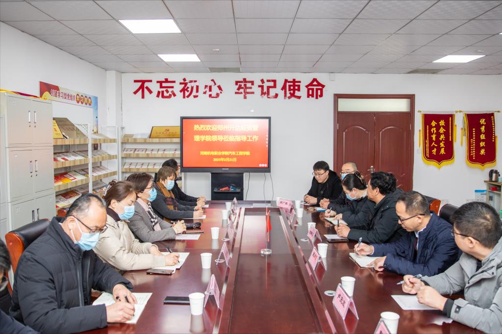 2月21日上午, 校长张欣一行赴河南机电职业学院汽车工程学院参访交流,教务处、校长办公室、实训处、校地合作处、交通管理学院等部门同仁参加。