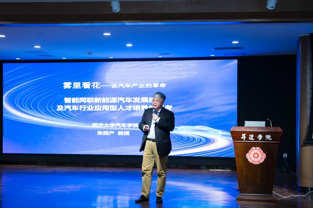 为提高学生对于新能源汽车的认识,充分了解我国汽车行业的发展趋势,以及如何培养汽车领域的高级人才,3月27日下午于双创大讲堂,我校特邀同济大学汽车学院朱西产教授来校做“智能网联新能源汽车发展趋势及汽车行业应用型人才培养的思考”的专题报告。执行董事王新奇、副校长张其武及交通管理学院师生参加了报告会,报告会由副校长张其武主持。