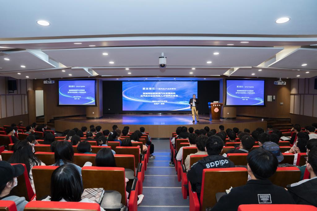 朱西产教授讲到智能新能源汽车技术变革与人才问题,现有车辆学科体系与行业需求不适应,无法满足新时代的战略需求,因此新的人才培养模式探索势在必行,车辆工程交叉学科建设将是培养车辆专业复合人才的重要途径。朱教授的讲座幽默又严谨,让学生充分了解了目前全球智能网联新能源汽车的发展趋势和如何成为当前汽车行业需要的高级复合型人才,对学生系统性思维和创新能力的培养具有十分现实的指导意义。