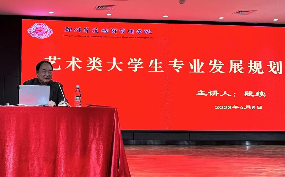 下午2点30分段续教授在双创大讲堂为我校国际标准舞专业的200师生进行了“艺术类大学生专业发展规划的报告。报告由体育舞蹈教研室主任栗元辉教授主持,栗教授为同学们介绍了段续教授在艺术领域取得的辉煌成就。段续教授是中国音乐家协会合唱联盟大学生合唱团联盟轮值主席,河南省学校艺术教育学会高校分会副会长,中国中央电视总台“中国器乐电视大赛”总决赛评委,韩国“报勋”国际舞蹈大赛评委,德国依姆伶歌剧节特邀艺术策划,原河南师范大学音乐舞蹈学院院长,现任郑州西亚斯学院音乐戏剧学院院长。