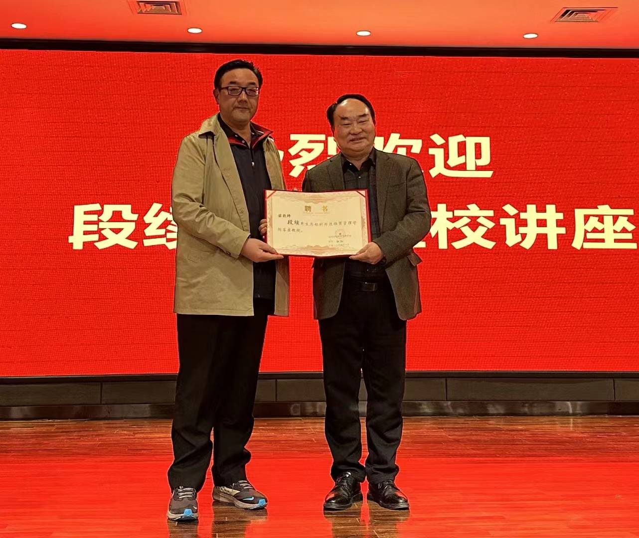 4月6日,中国音乐家协会大学生合唱团联盟轮值主席段续教授应邀到我校讲学。执行董事王新奇亲切会见了段续教授,并向段教授介绍了我校的基本情况,感谢段教授到我校为同学们讲学,随后王新奇董事为段续教授颁发了我校客座教授聘书。