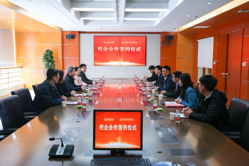河南黎明重工科技股份有限公司行政总裁杨海涛、人力资源总监柴玄阳、招聘经理程驰及在职毕业生代表销售经理秦琦坤、事业部经理师建鹏、人力资源部经理李雪飞和郑州悉知科技有限公司领导热情接待。雷霆书记一行走访调研了黎明重工材料馆、文化馆、生产车间、职工餐厅和郑州悉知科技有限公司员工办公场所等区域,与河南黎明重工科技股份有限公司、郑州悉知科技有限公司领导进行深入交流,签订校企合作协议,并举行了挂牌仪式。