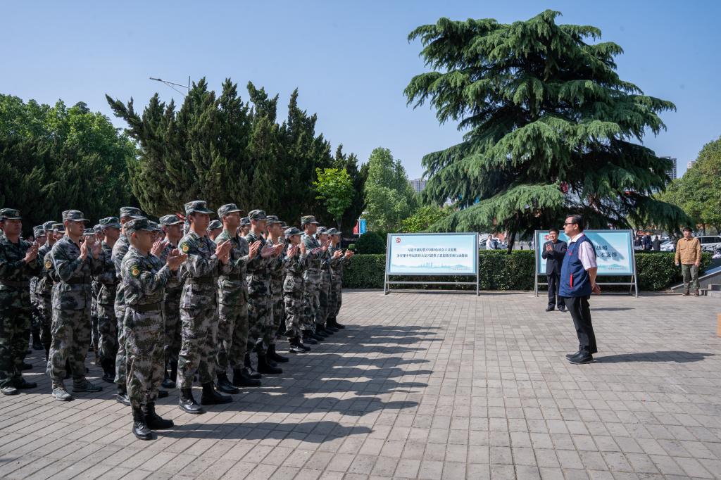 检阅完成后,王新奇对全体军训教官进行了亲切慰问。他代表全校师生向全体教官表达了衷心的感谢;对军训开始后,全体受训新生所呈现出的高昂的士气、饱满的精神、严明的纪律给予充分的肯定;同时他也指出要高度认识军训对国防教育、对大学生国家安全意识、对加强建设现代化国防后备力量重要的意义,并诫勉全体教官再接再厉,为升达军训及国防教育做出自己的贡献。