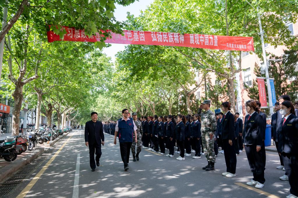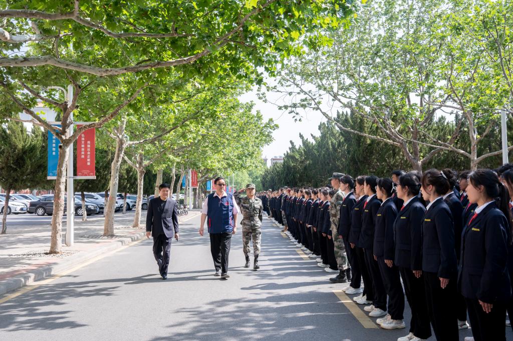 4月26日下午,我校2022级新生军训汇演顺利举行。执行董事王新奇出席并检阅受训方阵;校武装部部长张红阳陪同检阅;各学院党政主管、行政秘书参加。