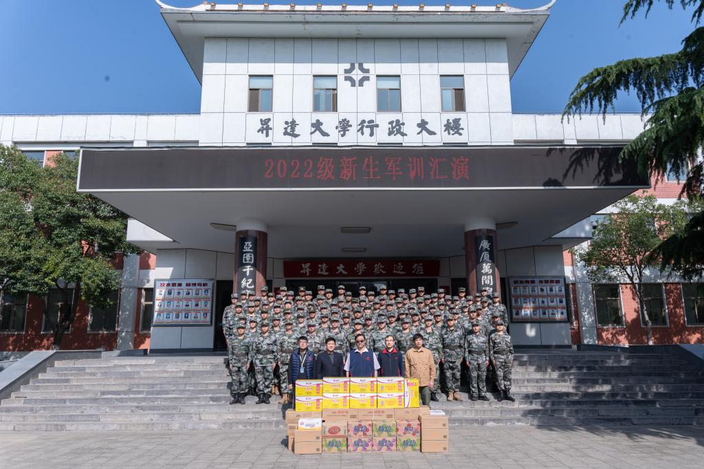 在军训总教官报告受阅方阵准备完毕后,2022级新生军训方阵检阅正式开始。方阵检阅由行政楼出发,沿“勤俭、朴实、自力、更生”四条主干道依次进行。每到一处,王新奇都亲切问候受阅学生,同学们则报以高亢热烈的回应:“执行董事好,为升达争光”。整个检阅一气呵成,气势恢宏。