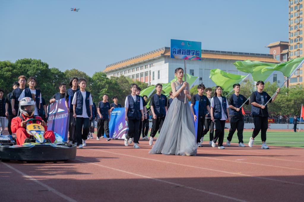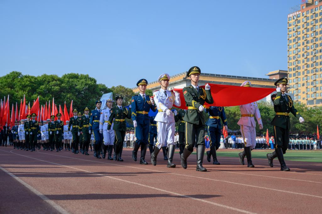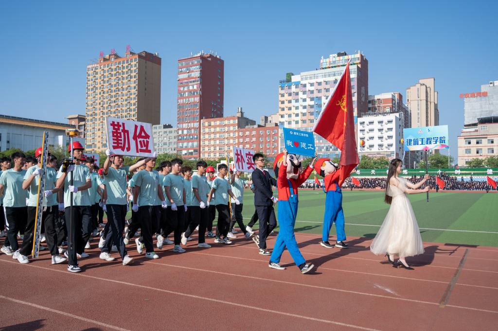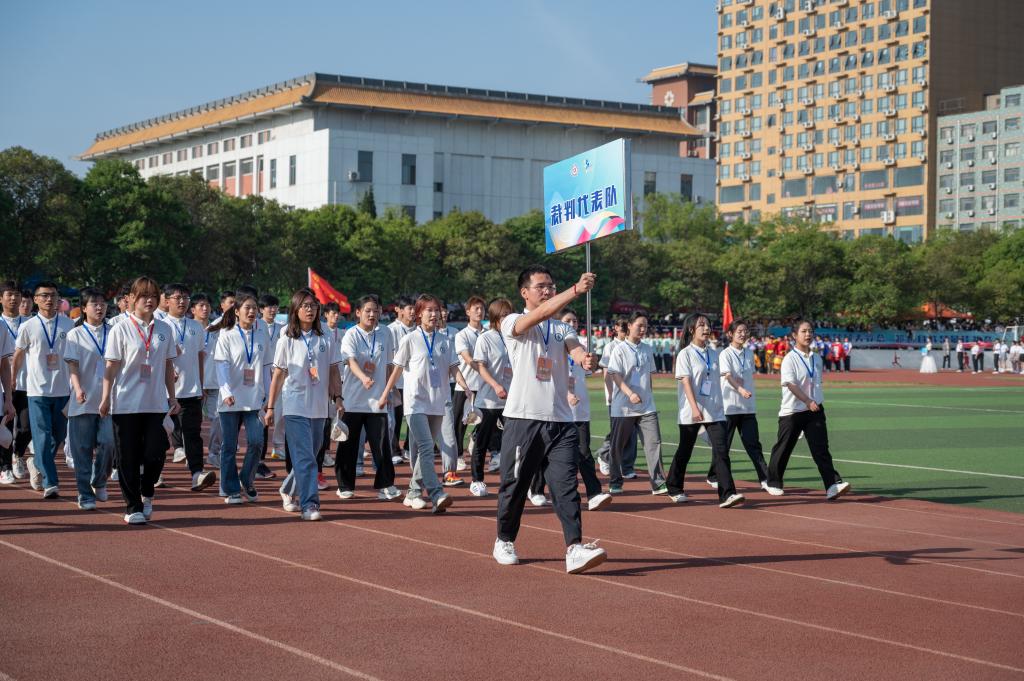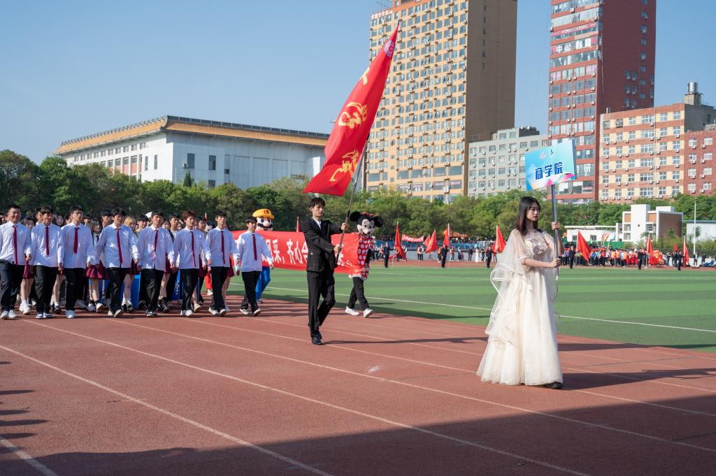 伴随着激昂而响亮的口号声与铿锵有力、整齐划一的脚步声,在《运动员进行曲》豪迈奋进的节奏中,国旗班旗手身着军礼服,在国旗、校旗的引领下,高举着一面面红旗通过主席台。接着,裁判代表队、教师代表队、各学院仪仗队运动员代表身着整齐的服装,依次入场。一个个整齐划一的方阵向我们走来,一声声铿锵有力的口号响彻云霄。他们展现着别样的风采,高昂的斗志;他们精神饱满,他们气宇轩昂。运动员们英姿飒爽、意气风发,充分展现了升达学子的蓬勃朝气和青春活力,接受领导、老师们的检阅。火热的心情,燃烧在每个人的心间;无边的喜悦,洋溢在运动场的每一个角落。