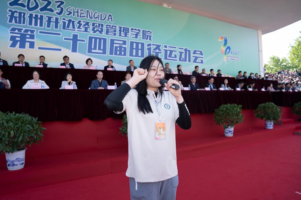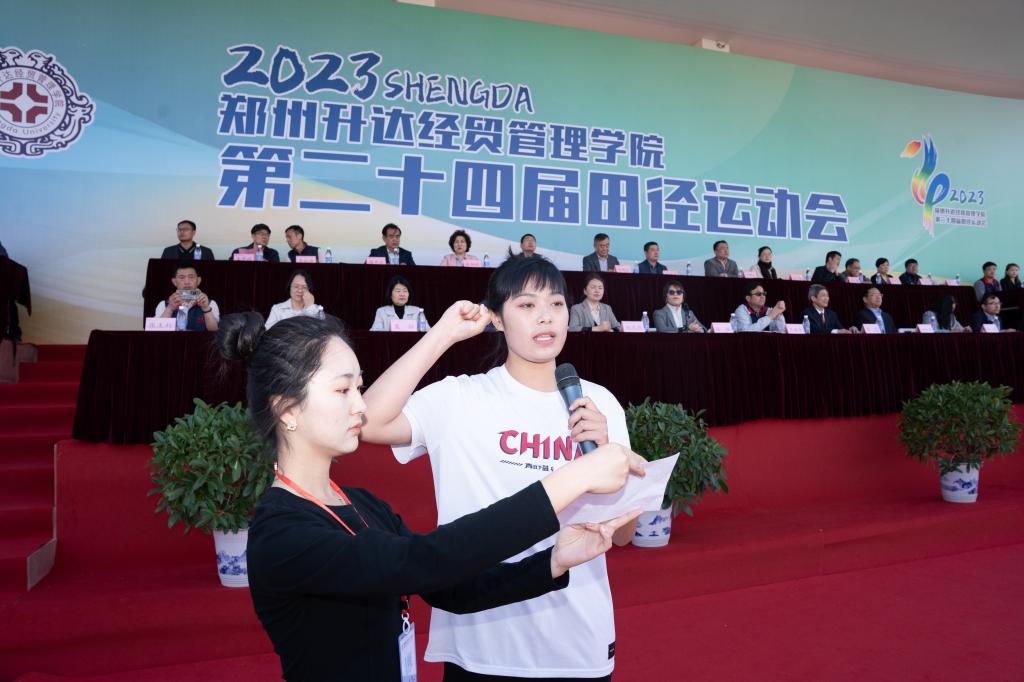 她说,开展体育运动,增强师生体质,是落实立德树人根本任务,培养德智体美劳全面发展人才的需要;是增强国家凝聚力和文化竞争力的需要,是实现中华民族伟大复兴中国梦的根本要求;也是加强我校精神文明建设、提升校园文化品位、促进学生全面发展的重要举措。建校30年来,我校全面贯彻党的教育方针,认真落实创办人的育人理念,不断加强学校体育教学工作,深入推进阳光体育工程,学校体育教学水平稳步提高,群众性体育活动蓬勃发展。特别是近年来,学校积极组织师生参加校外各类高级别的体育竞赛活动,取得了骄人成绩,受到了社会广泛好评。田径运动会作为学校规格最高、规模最大、参与人数最多的体育盛会,将全面检阅我校体育运动的成果,集中展示全校师生的精神面貌和综合素质,对创建新时代高水平民办大学具有重要意义。张欣提出了四点要求:一、全体运动员本着“友谊第一、比赛第二”的精神,服从大会安排,尊重裁判,尊重其他选手,发扬顽强拼搏精神,赛出水平,赛出风格;二、希望全体裁判员,本着“客观、公正、准确”的态度,严守规程,公正裁决,确保比赛工作顺利进行;三、希望全体工作人员忠于职守,热情服务,保障安全;四、希望全体同学能发扬团队合作精神,为运动员做好后勤服务工作。她相信在全校师生的共同努力下,我校第24届春季田径运动会一定会是一次隆重热烈、文明有序、安全和谐的体育盛会。最后,张欣预祝全体运动员取得优异的成绩,预祝本届运动会取得圆满成功。