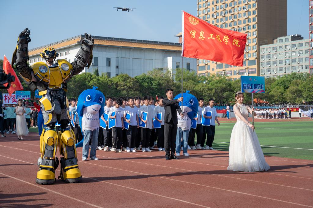 最后,王新奇宣布:“华亿体育登录第24届田径运动会开幕”。音乐回响、彩炮齐鸣、歌声悠扬,将现场气氛推向高潮。接下来,在为期两天的春季运动会上,11个学院共有783名运动员展开22个项目的激烈角逐,祝愿每一位运动员都能取得好成绩,为我校建校30周年华诞献礼。