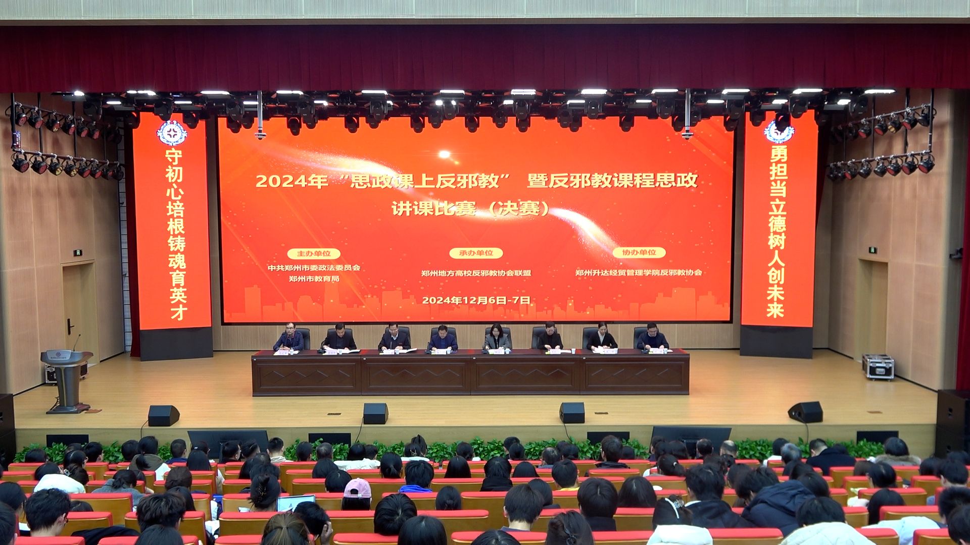 12月6日至7日,2024年郑州市“思政课上反邪教”暨反邪教课程思政讲课比赛决赛在我校成功举办。中共郑州市委政法委员会反邪教工作协调处处长杨耀,郑州市教育局高教处处长钟海云,校党委副书记、反邪教协会理事长张金安,郑州地方高校反邪教协会联盟及我校相关部门负责同志出席开幕式。全市决赛参赛选手、我校二级学院反邪教协会理事长、专干及师生代表参加开幕式。