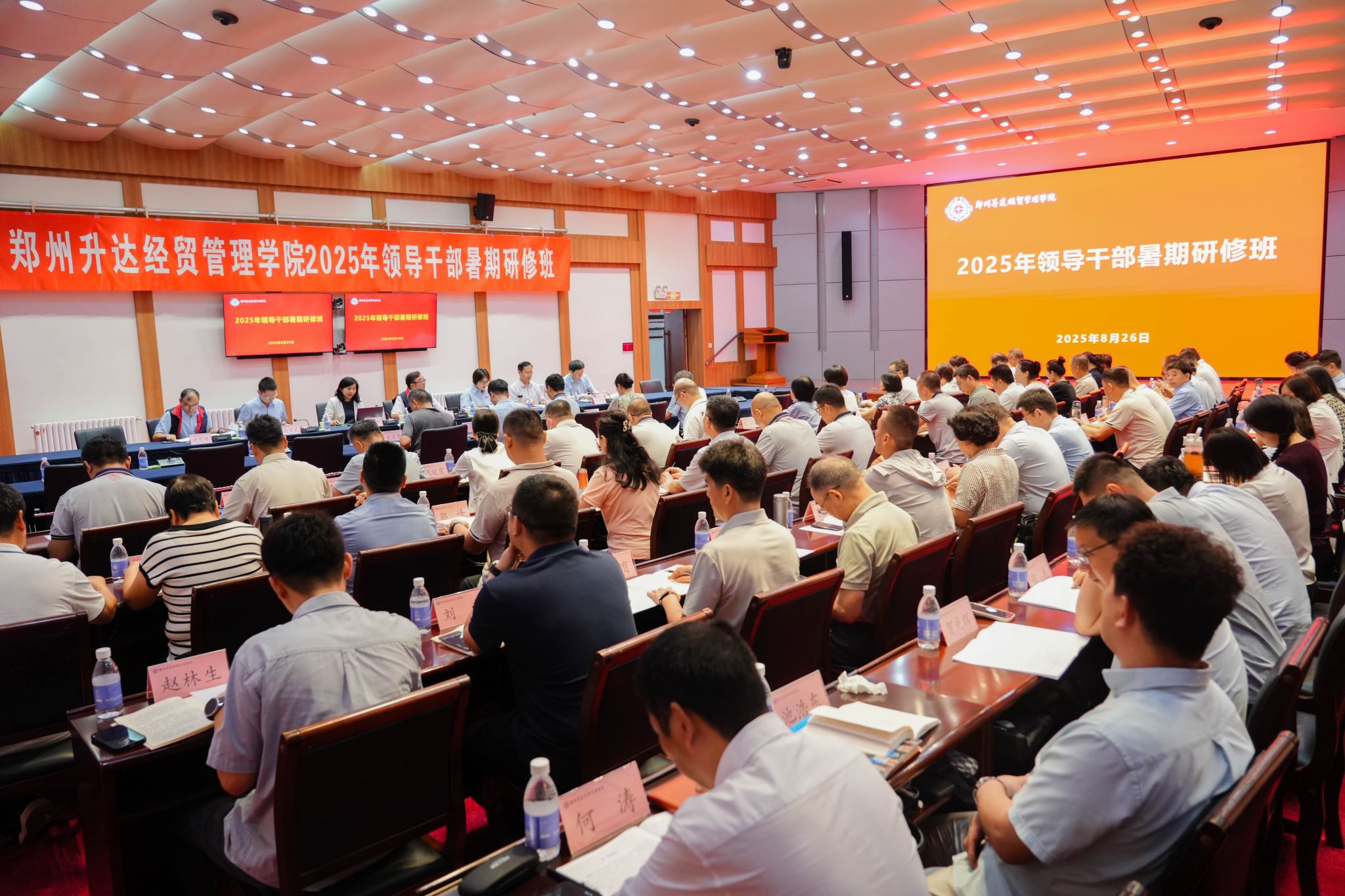 8月26日,研修班在庄严的开班仪式中拉开帷幕。董事长王新奇,校长张欣,党委副书记、副校长张金安,党委委员、副校长张其武,登封校区党工委书记沈定军等校领导和七十多位中层干部参加开班仪式。