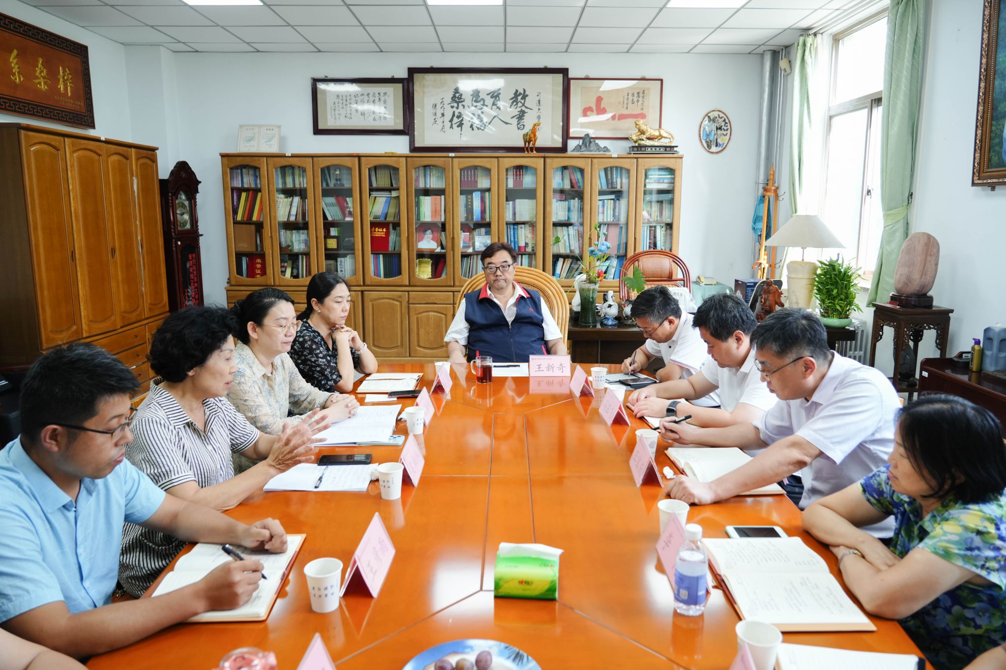 王新奇在总结讲话中强调,一要狠抓落实,让培训学习成果转化为工作实效。各部门要结合职责,把研修所学融入实际工作,形成具体计划和行动。加强跨部门交流,分享好经验好做法,让学习成果真正用起来、见效快,提升全校工作水平。二要筑牢防线,坚决守住学校安全稳定底线。新学期将至,各单位须高度重视安全,全面排查隐患、及时整改,完善应急机制,确保及时有效处置问题。加强师生安全教育,营造人人重视安全、处处注意安全的氛围,为学校发展提供保障。三、周密部署,全力做好新学期迎新与招生工作。迎新和招生事关学校形象和发展,必须做细做实。迎新要服务贴心,帮助新生尽快适应校园;招生要多想办法提高报到率,拓展优质生源,同时总结经验、优化措施,促进招生工作持续向好。