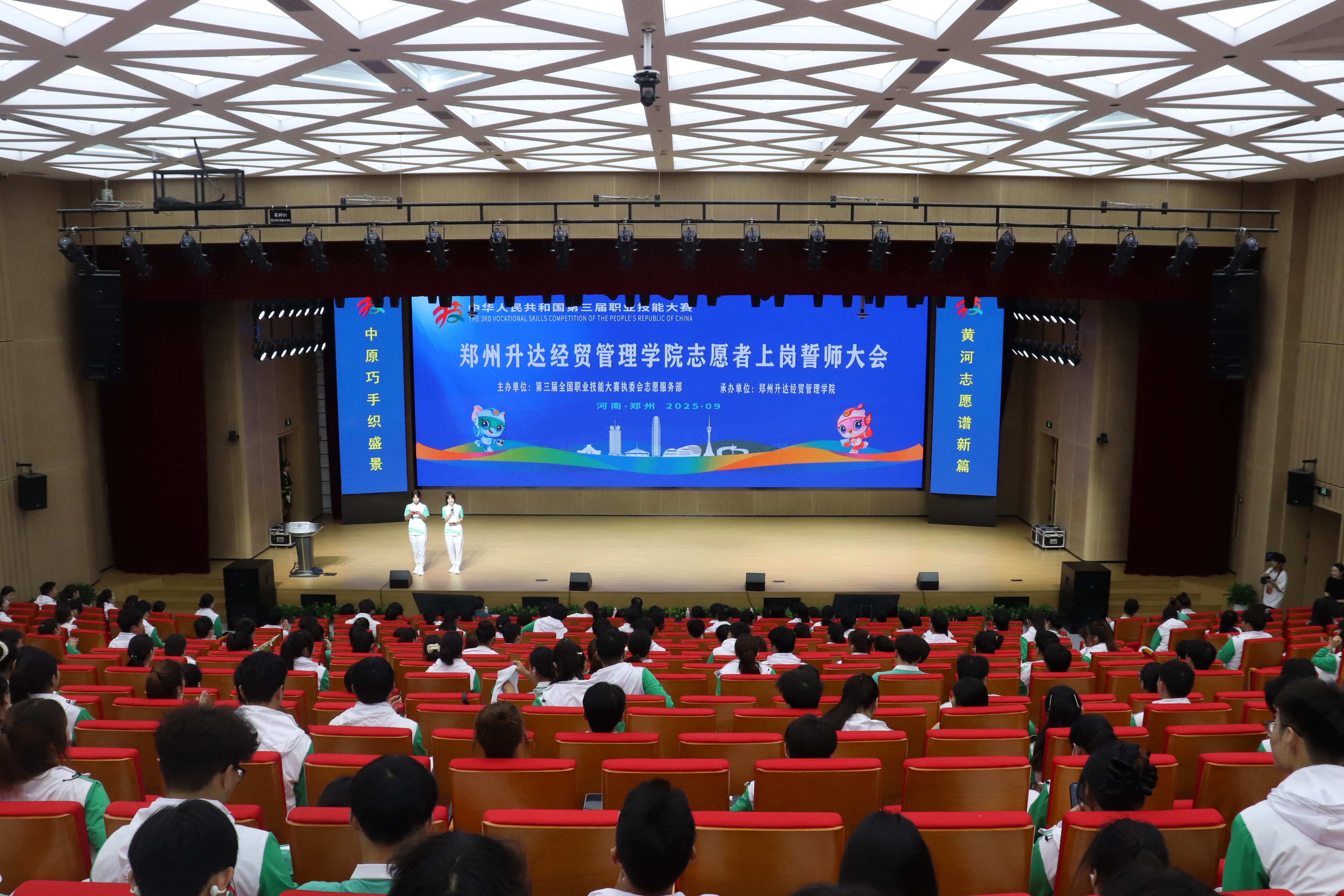 9月16日上午,我校在新图书馆第三报告厅隆重举行第三届全国职业技能大赛志愿者上岗誓师大会。校党委副书记、副校长张金安出席大会,党委宣传部部长韦杨建、融媒体中心主任王锋、校团委李霄锋,各学院党委副书记兼团委书记以及大赛志愿者带队督导教师、全体志愿者参加大会。全国第三届职业技能大赛执行委员会志愿服务部综合协调组组长、共青团郑州市委社会联络部部长董克伟受邀参加仪式。