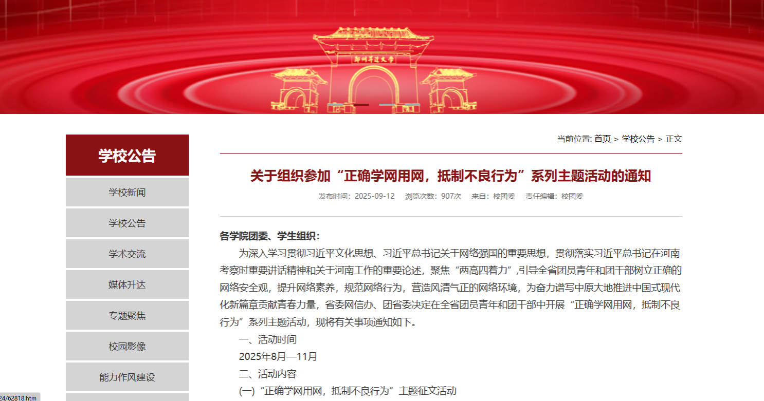 为深入学习宣传贯彻习近平总书记关于网络强国的重要思想,按照省委教育工委、省教育厅工作安排,我校于9月15日至21日,组织开展了2025年国家网络安全宣传周河南省校园日系列活动。活动以“网络安全为人民 网络安全靠人民——以高水平安全守护高质量发展”为主题,通过多种形式深入开展网络安全宣传教育,全面提升师生网络安全意识和防护能力。